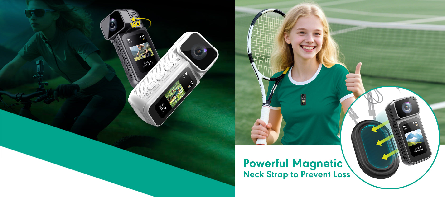 2.7K Mini DV Camera with 180° Rotating Lens & WiFi | Magnetic Mount,S80