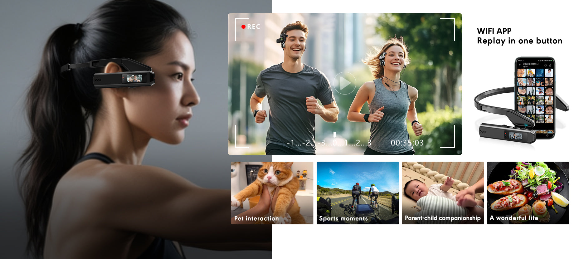 Glasses-Mounted Mini Camera with WiFi, 0.96" Screen | Hands-Free Recording